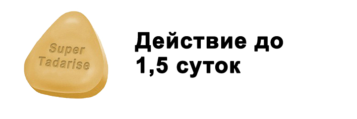 Супер Тадарайз отличается от своего аналога Сиалиса составом. К эффективному Тадалафилу добавлен Дапоксетин. За счет этого получается двойное действие. Теперь таблетки способны вылечить ЭД и предотвратить раннюю эякуляцию. После приема препарат работает спустя 20 минут. Действие сохраняется довольно долго – 36 часов. В некоторых случаях и дольше.